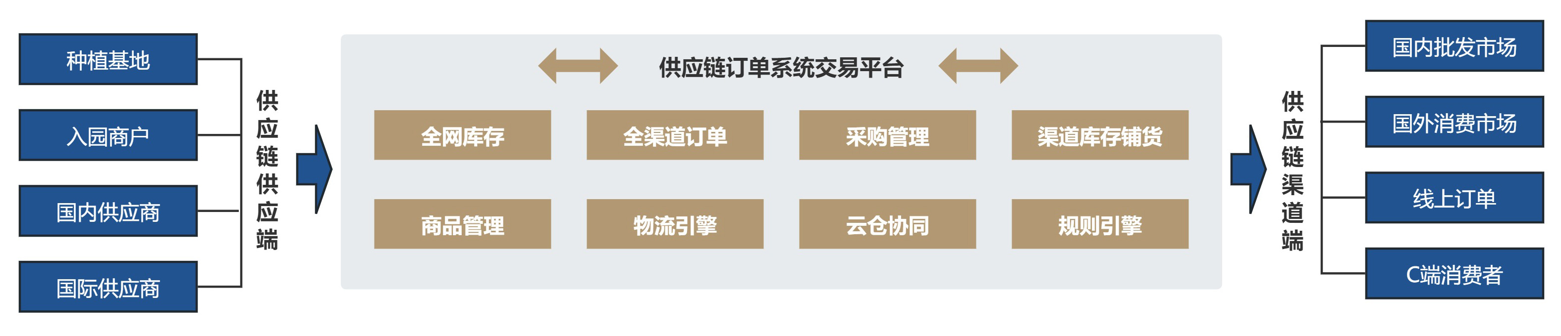 公司自主研发拥有知识产权的农产品大数据智能化管理平台,形成项目的智能化管理平台和对外智能化系统的服务输出。联合产学研等科技院校推动农业科技项目的研发,成果的转化和推广,引领行业发展。公司设有综合管理中心、风控中心、财务中心、供应链中心、产业运营中心、产业发展中心和研发中心,拥有强大的管理运营团队,至今,已在全国各省成功落地多个项目,创新致远、合作共赢是集团始终秉持的经营理念,链通全球是集团的宏伟愿景。